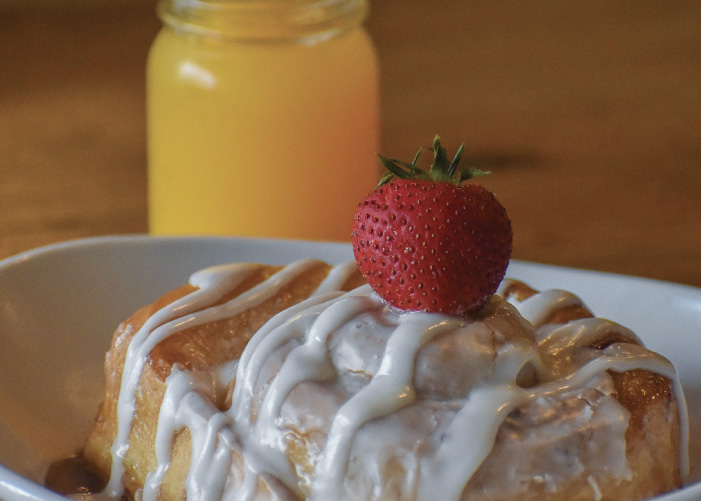 "GET THE CINNAMON ROLL, even if you have to take some to go. Dough was so moist, well flavored."